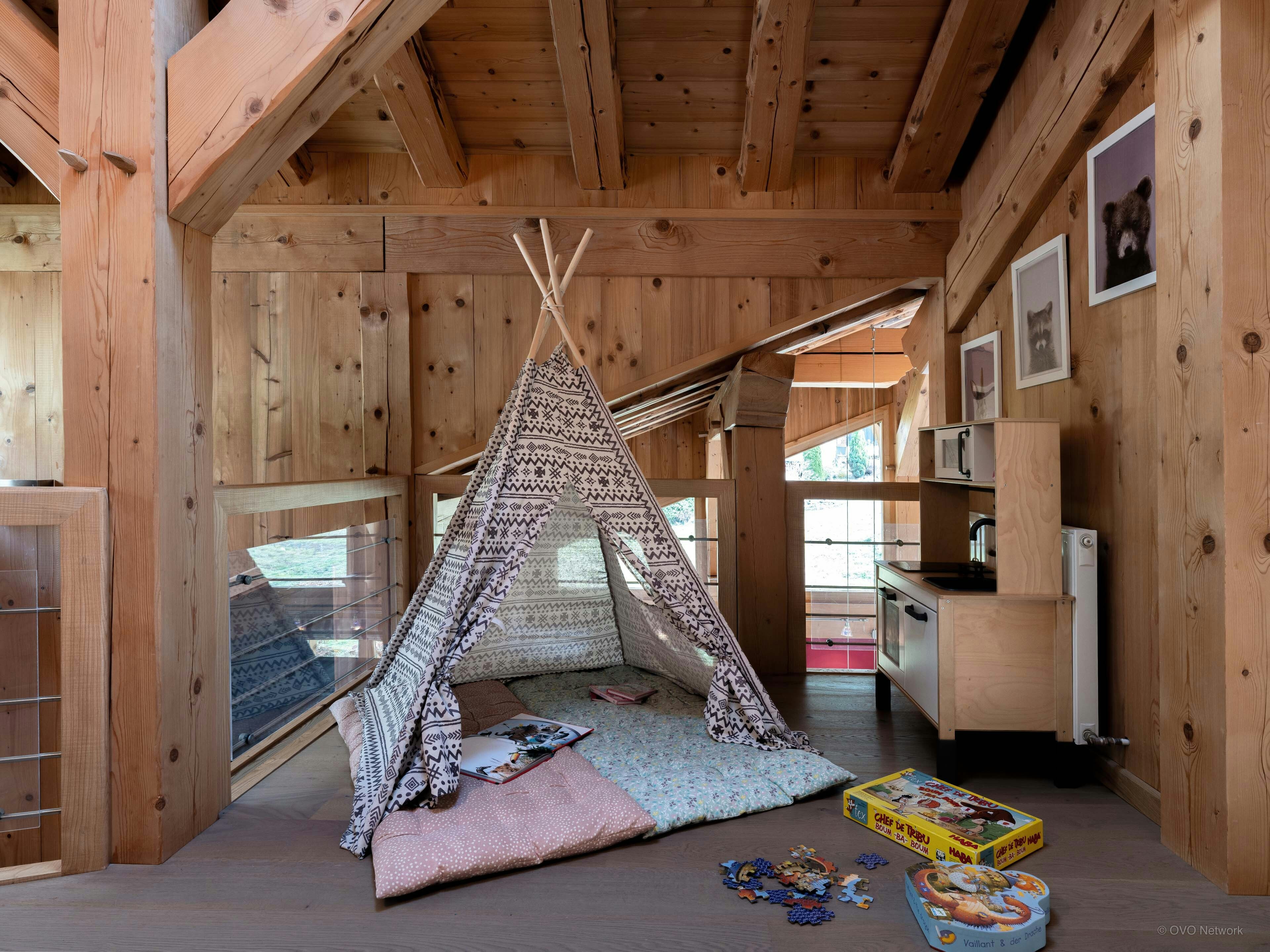 If you’re staying at Chalet Woodline with young children, the landing can be used as a play area. They can also let off steam in the chalet’s flat garden.